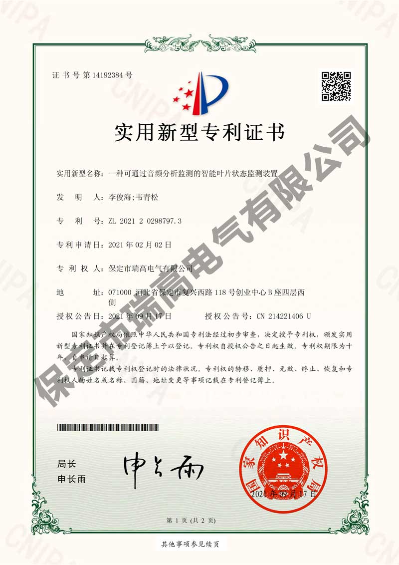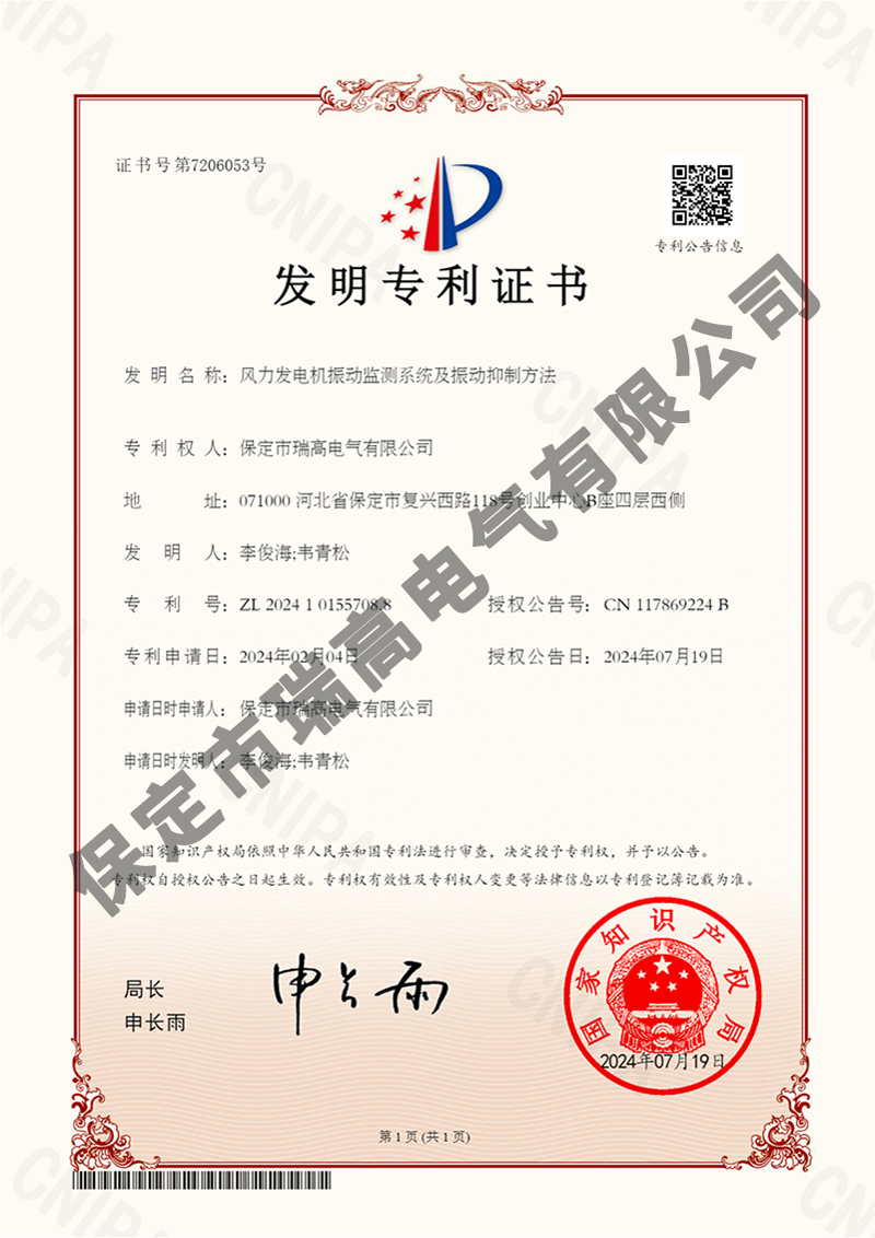 風(fēng)力發(fā)電機(jī)振動(dòng)監(jiān)測(cè)系統(tǒng)及振動(dòng)抑制方法風(fēng)力發(fā)電機(jī)振動(dòng)監(jiān)測(cè)系統(tǒng)及振動(dòng)抑制方法電流檢測(cè)系統(tǒng)電流檢測(cè)系統(tǒng)干粉滅火設(shè)備干粉滅火設(shè)備葉片狀態(tài)監(jiān)測(cè)裝置葉片狀態(tài)監(jiān)測(cè)裝置懸掛式自動(dòng)滅火裝置懸掛式自動(dòng)滅火裝置接地保護(hù)裝置接地保護(hù)裝置箱變測(cè)控裝置箱變測(cè)控裝置環(huán)境管理體系認(rèn)證證書(shū)環(huán)境管理體系認(rèn)證證書(shū)